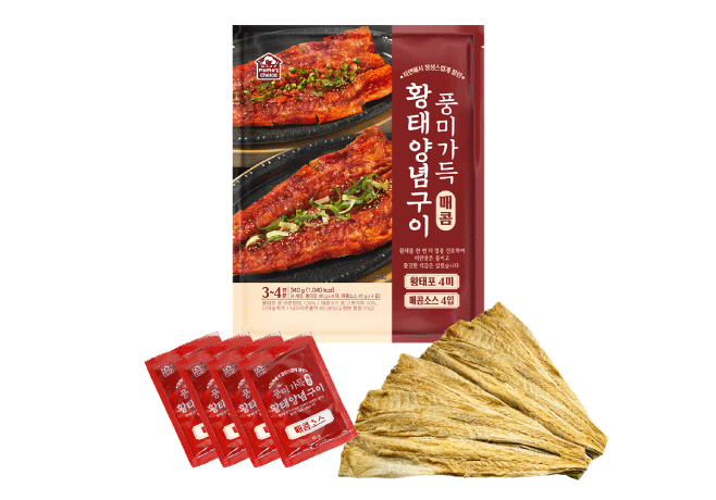 | 원재료명 | 황태포(마른명태), 매콤소스(고추장,설탕,기타과당,마늘,고춧가루,참기름,더덕농축액,L-글루탐산나트륨,혼합제제) |